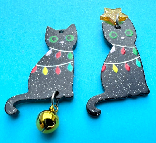 Delightful Glittery Black Kittens Adorned with Christmas Lights - Pendant or Charm