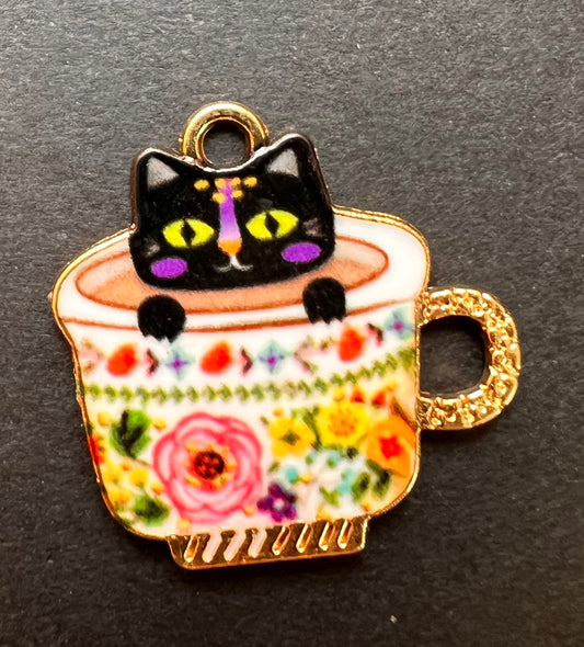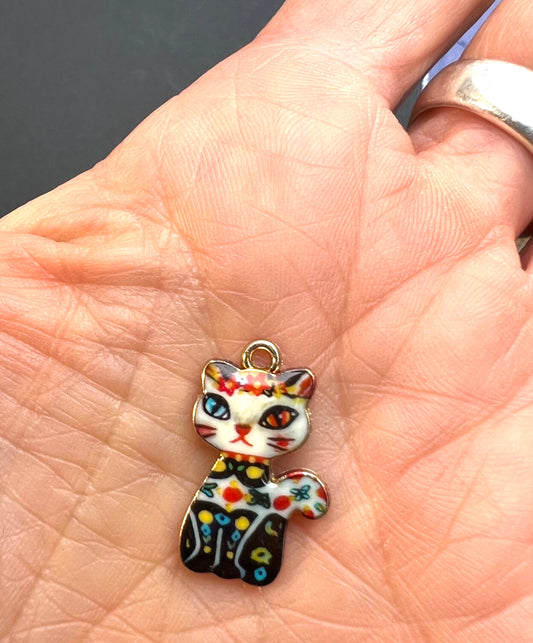 Colourful Enamel Cat 2cm Enamel Charm / Pendant