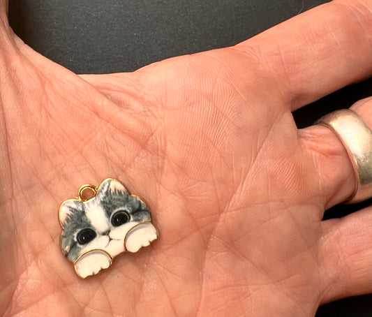 Worried Cat 1.7cm Enamel Charm / Pendant
