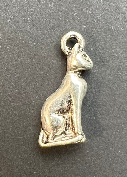 Solid Silver Tone 2cm tall Egyptian Cat Charm / Pendant