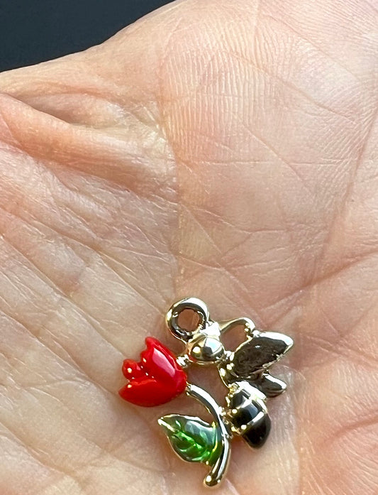 Enamel Bee on a Flower 1.5cm Enamel Charm / Pendant