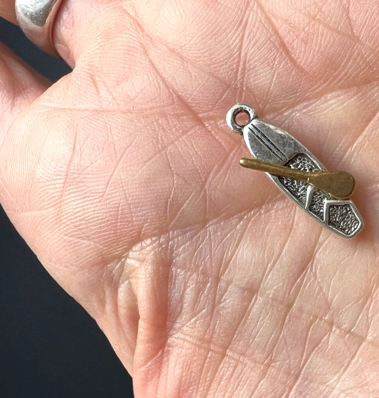 Silver Canoe + Golden Paddle 2cm Charm / Pendant