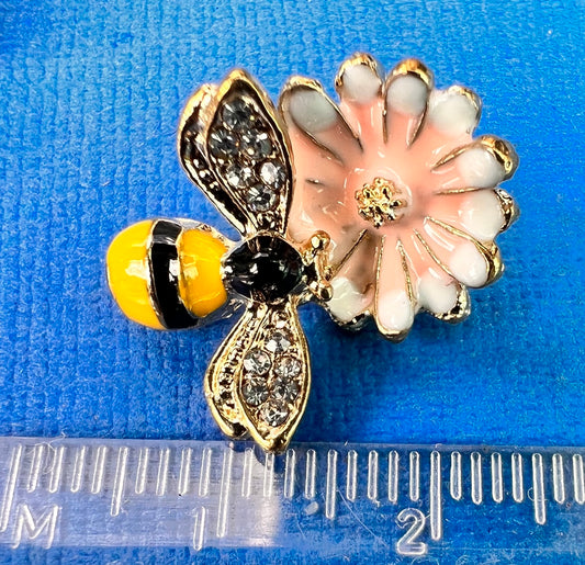 Pretty Diamante + Enamel Bumble Bee + Flower 2cm Pendant