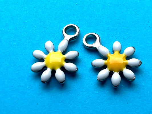 2 Tiny Enamel Daisy Charms - 7mm wide