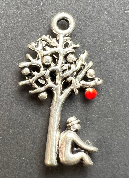 Newton and The Apple Tree Silver Tone 2cm tall Charm / Pendant