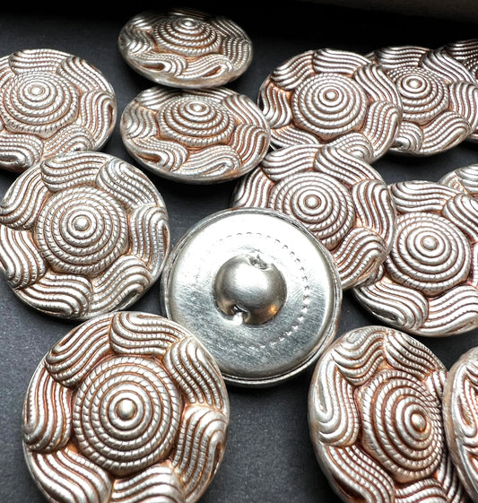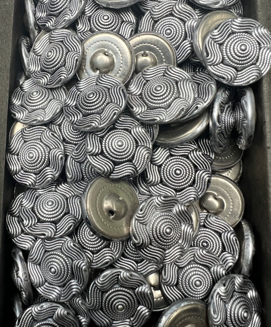 1 Gross -144 - VINTAGE Swirly Silver Metal Buttons - 2.3cm wide