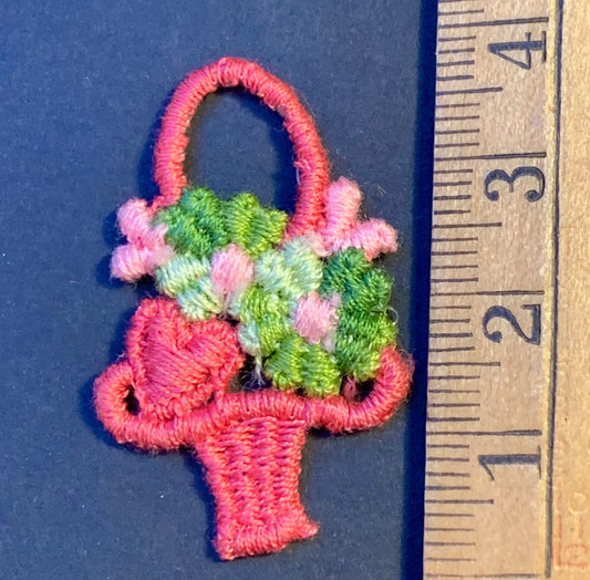 Vintage 3.5cm Basket of Flowers and Loveheart Applique