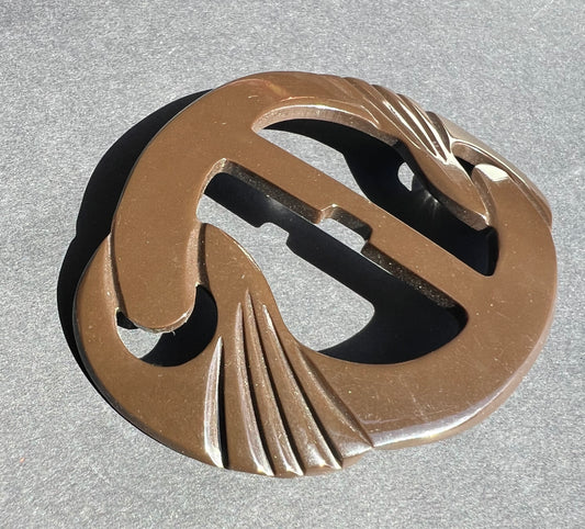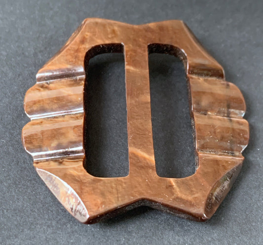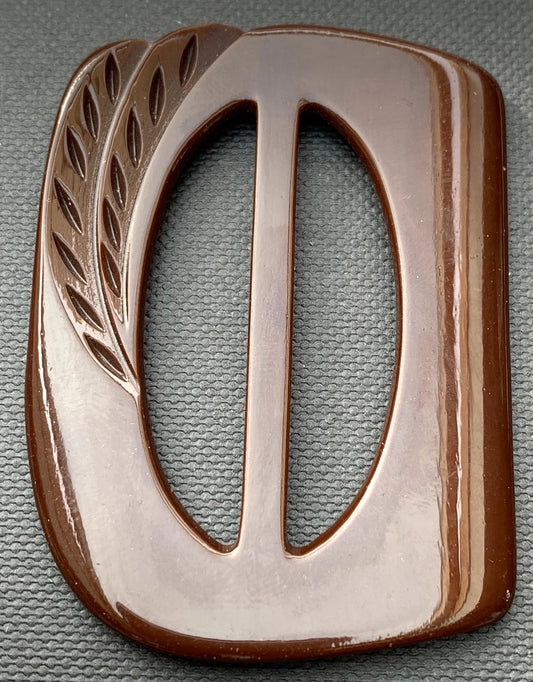 Shiny Conker Brown 1940s Casein 6cm Buckle..with a Flourish..