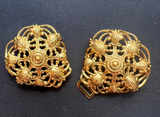 Wonderfully Ornate 1940s 2 Part Gold Metal Belt Buckle - Old Warehouse Find