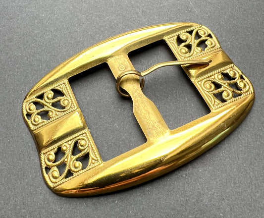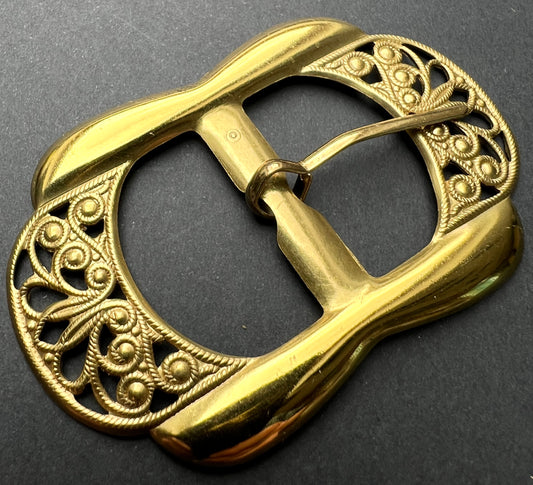 Vintage 1940s Italian Ornate Gold Metal Belt Buckle - Old Shop Stock