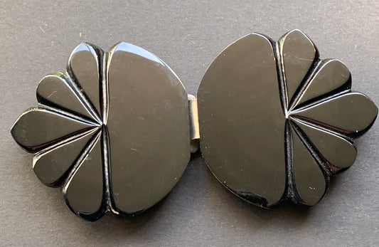 Gorgeous Black 1930s Deco 2 Part 8.5cm Belt Buckle for up to 2.7cm Belts