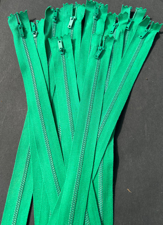 10 Lovely Chunky Vintage 6" Forest Green Y.K.K Metal Teeth Zips