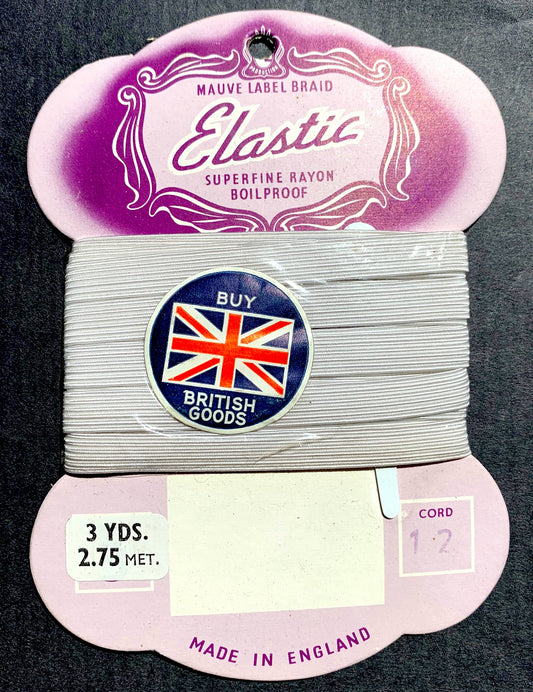 3 yards "BUY BRITISH GOODS" Superfine Rayon Boilproof Elastic