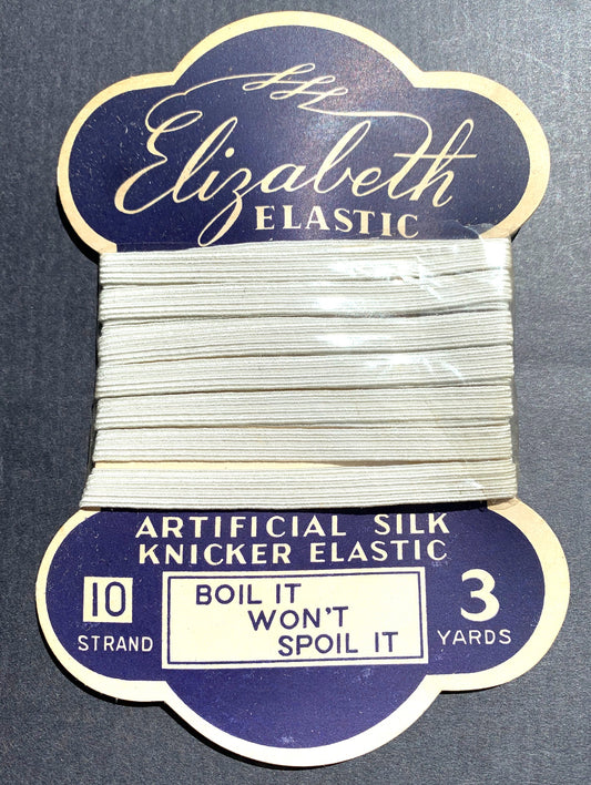 1940s ELIZABETH Artificial Silk Knicker Elastic 3 Yards "BOIL IT WON'T SPOIL IT"