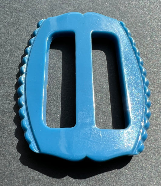 Unusual 1940s Petrol Blue 5.5cm French Casein Belt Buckle