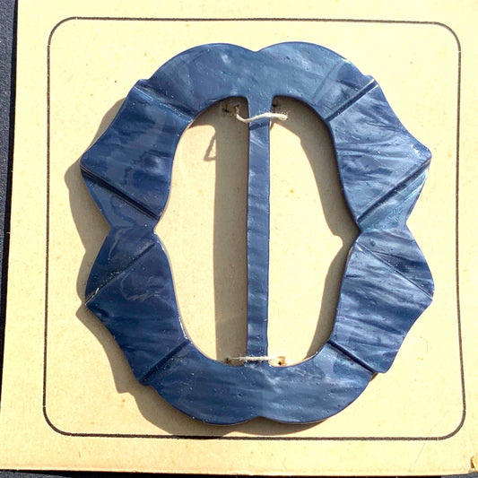 Unusual Marbled Petrol Blue 1940s French Buckle for 3.5cm belt