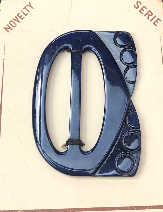 Deep and Meaningful Midnight Blue 1940s French Casein 6cm Belt Buckle
