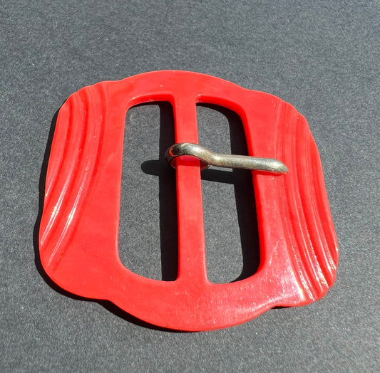 Marvellously Tactile Bright Red 1940s Casein 4cm Buckle - Unused Old Warehouse find..
