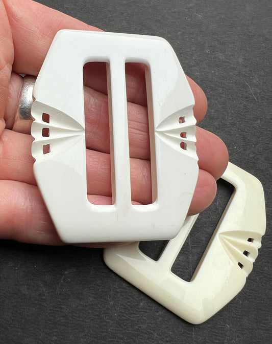 Unusual 1940s White Long 9.5cm Buckle for up to 2.2cm Belt