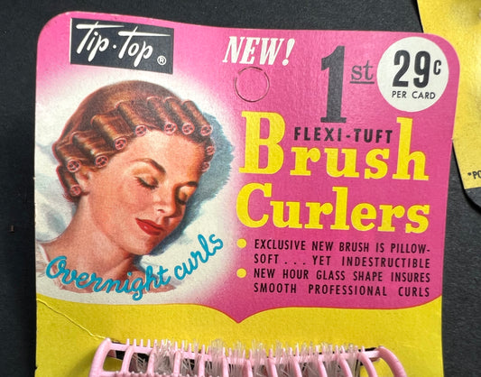Lovely Vintage Display Card of NEW Tip Top Brush Curlers for Overnight Curls