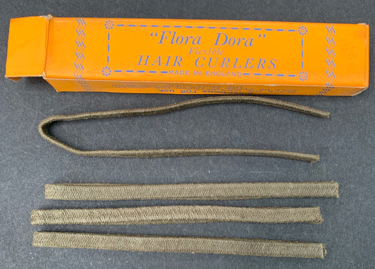 "Flora Dora" 1930s Box of 6" or 9" long FLEXIBLE fabric covered HAIR CURLERS