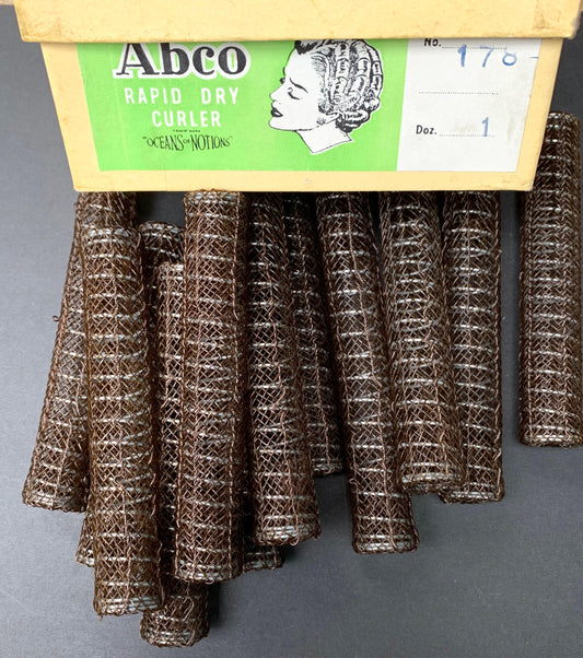 Box of 12 Unused 1940's Rapid Dry Curlers Hair Rollers "OCEANS Of NOTIONS"