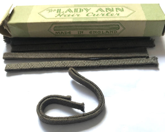 1930s Box of 6 x 6" long Lady Ann fabric covered Hair Curlers