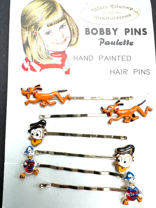6 Vintage Walt Disney Hair Pins - Mickey, Pluto, Donald
