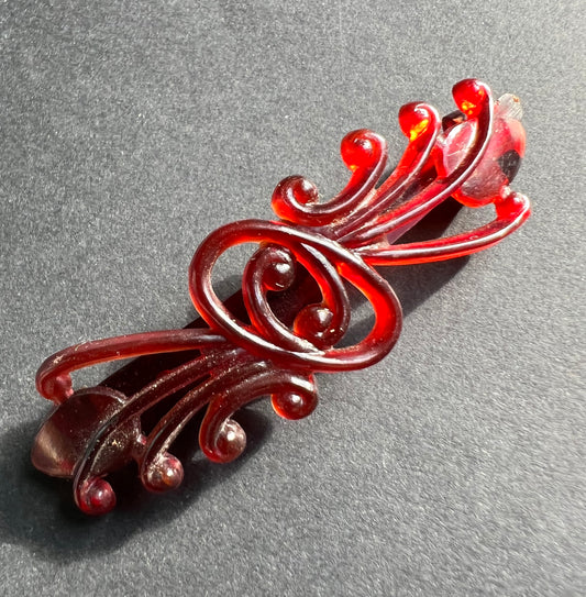 Pair of 1950s All Plastic 6.5cm Floral Red Hair Clips