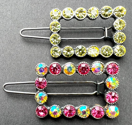 Sparkly 1980s Swarovski Crystal 3cm Hair Clip - Pink or Green