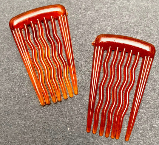 Pair of Little 1" / 2.3cm Vintage Hair Combs. with Waved Teeth.. Small But Effective !
