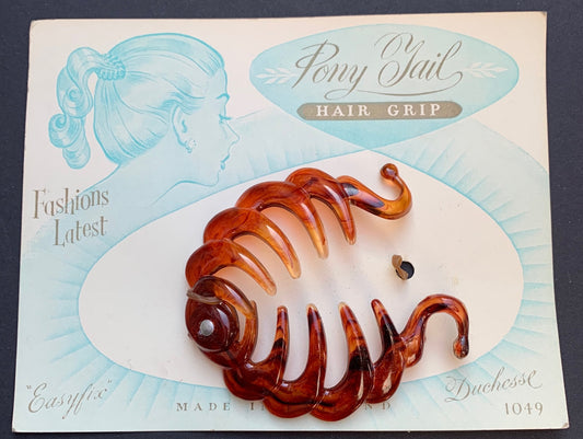 British 1950s Pony Tail 7cm Hair Grip/ Banana Clip on Lovely Display Card.