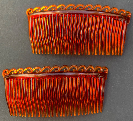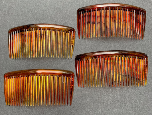 4 Vintage Hair Combs 2.5"/65mm wide Delicate Tortoiseshell Colour