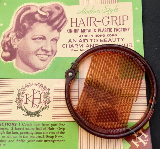 1940s 8cm Tortoiseshell Ring Grip "Modern Style HAIR-GRIP AID TO BEAUTY CHARM AND GLAMOUR "