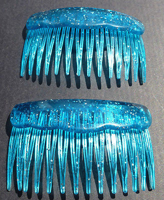 Pair of Vintage Baby Blue Hair combs - 2.5" wide