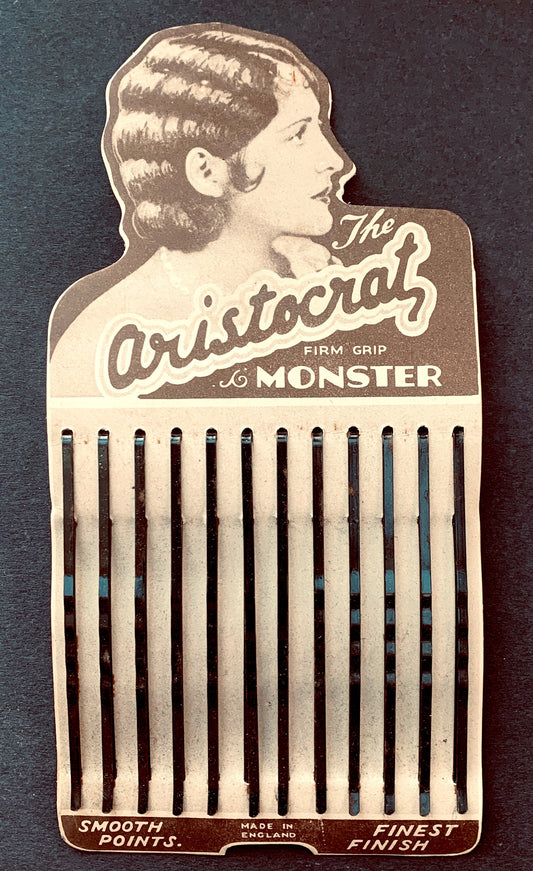 Only For Upper Class Hair.. Display Card of 1930s ARISTOCRAT Hair Grips Made in England