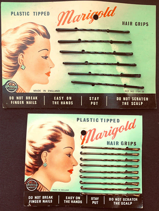 1940s MARIGOLD Plastic Tipped HAIR GRIPS.. Made in England - 5 or 6cm