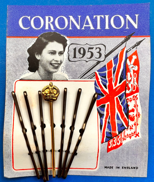 Original Unused 1953 Queen Elizabeth CORONATION Hair Pins with CROWN