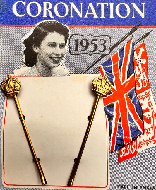 Genuine 1953 Queen Elizabeth 11 CORONATION Hair Pins with CROWNS