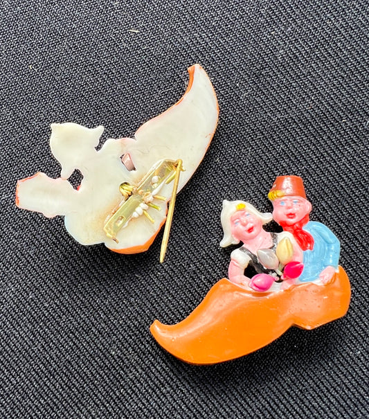 Sweet Vintage Celluloid Brooch ..Dutch Children in a Clog.