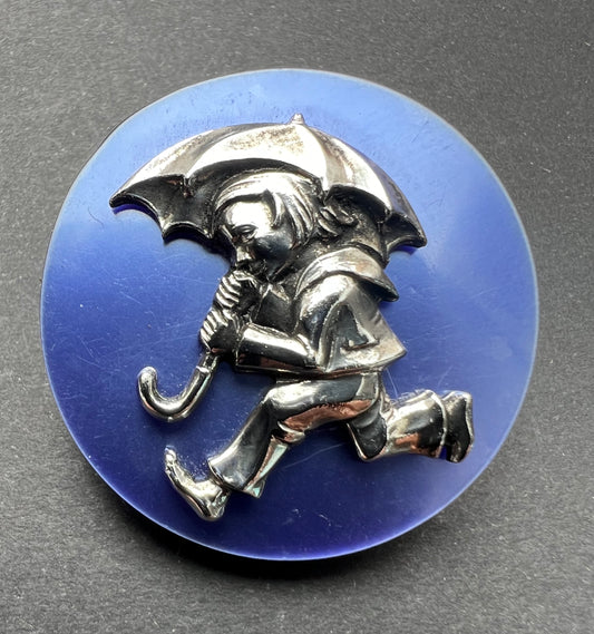 Colourful 1950s Running Man and Umbrella Brooches.