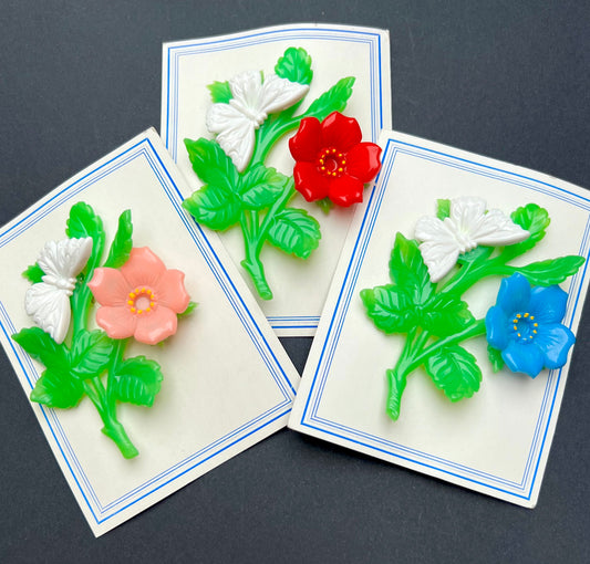 Joyful 1950s Flower and Butterfly Brooches