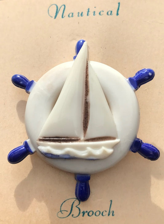 1940s Nautical Brooch...Serene Yacht and Calm Sea