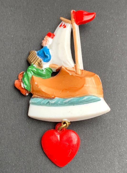 Whimsical Dutch Sailor Vintage Celluloid Brooch