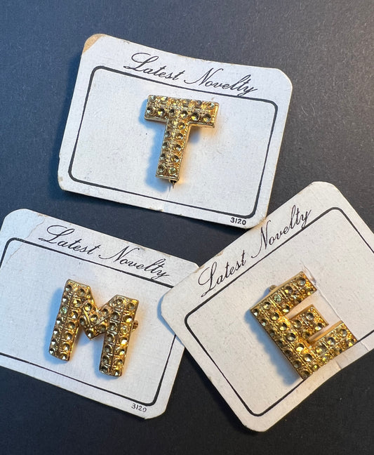 1940s "Latest Novelty" Initial Letter Brooches E, I, M, S, T and V