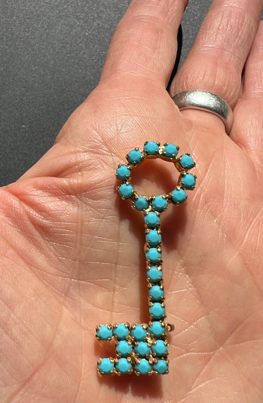 Big Vintage Turquoise Key Brooch