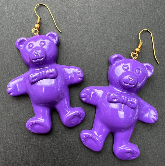 Very 1980s Colourful Big Teddy Bear Earrings - 5.5cm tall.