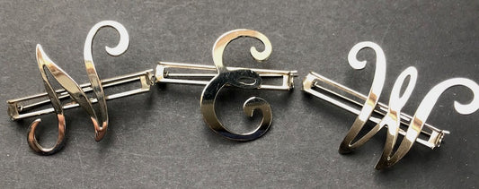 Vintage Chrome Initial Brooches : A, C, E, F, G, H, L, M, N, P,R, S, T, U, W and Y