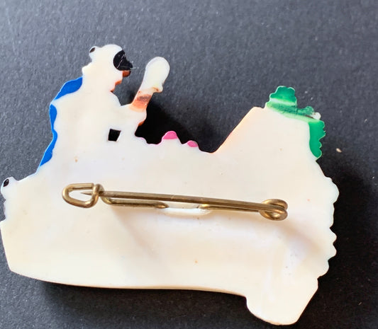 Vintage Celluloid Brooch - Shepherd and his Flock