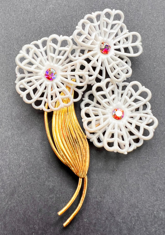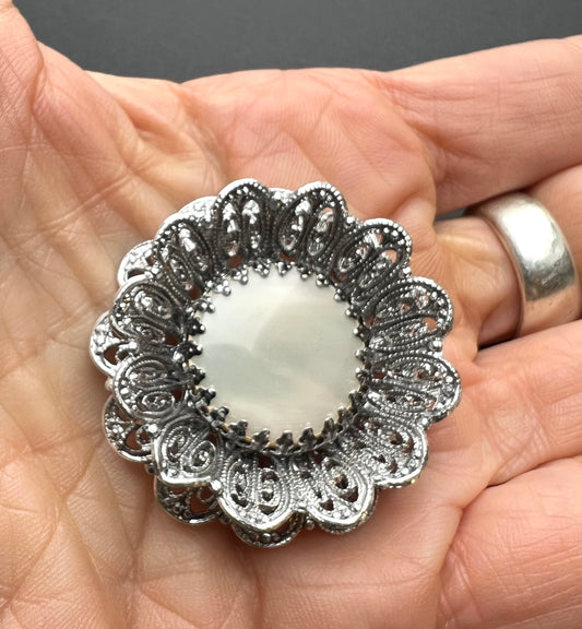 Alluring Vintage 1940s Filigree and Mother of Pearl Brooch.